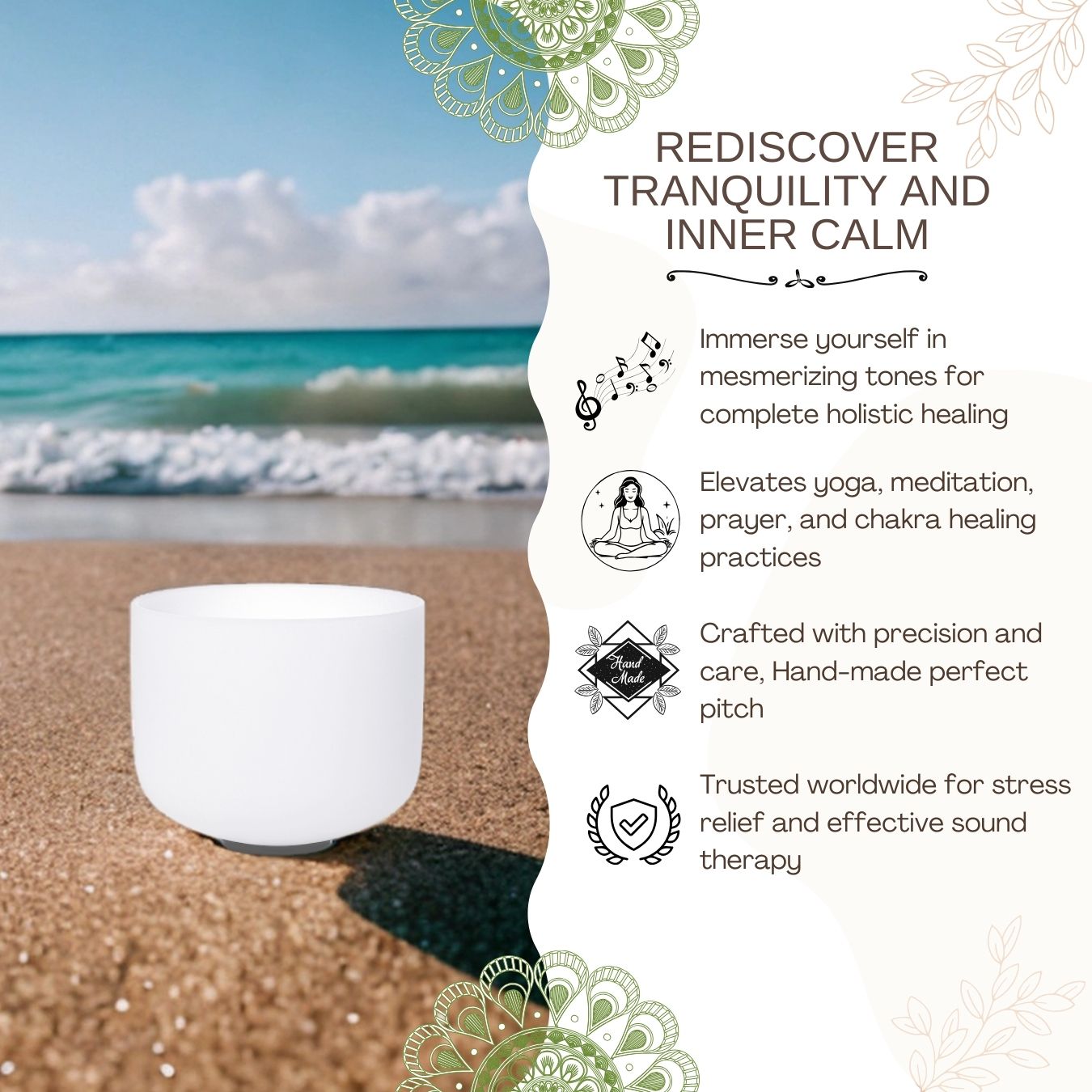 Versatile Use – Ideal for personal use or group sessions, in yoga studios, healing spaces, or home sanctuaries.
